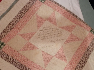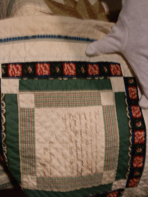 Isn't the hand writing on this block lovely? And to think they didn't have freezer paper stabilizer! Done with a quill pen! Cripes!