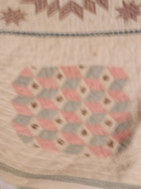 This block had a name embroidered in the center stitched with human hair. Just quilting and the name.